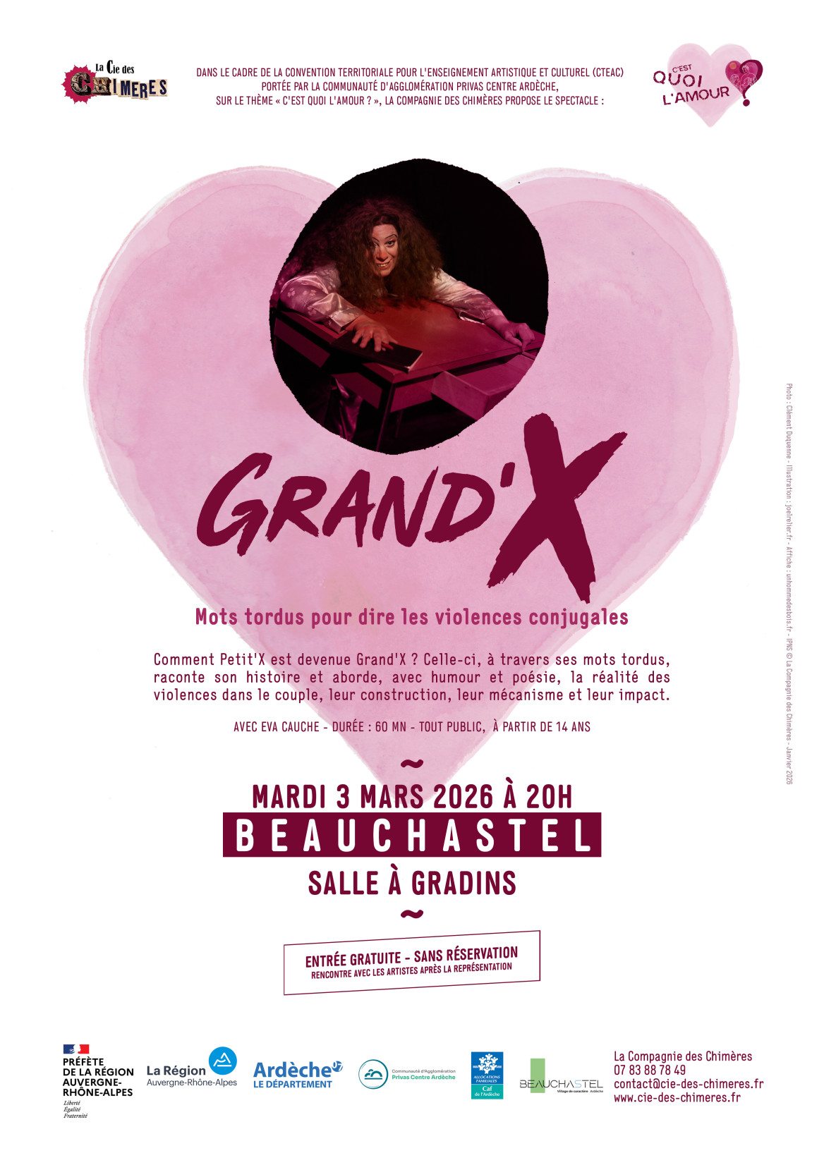 #SaveTheDate | Ne manquez pas le spectacle Grand X » qui se tiendra à Beauchastel le MARDI 03 MARS prochain sur le thème des violences intrafamiliales